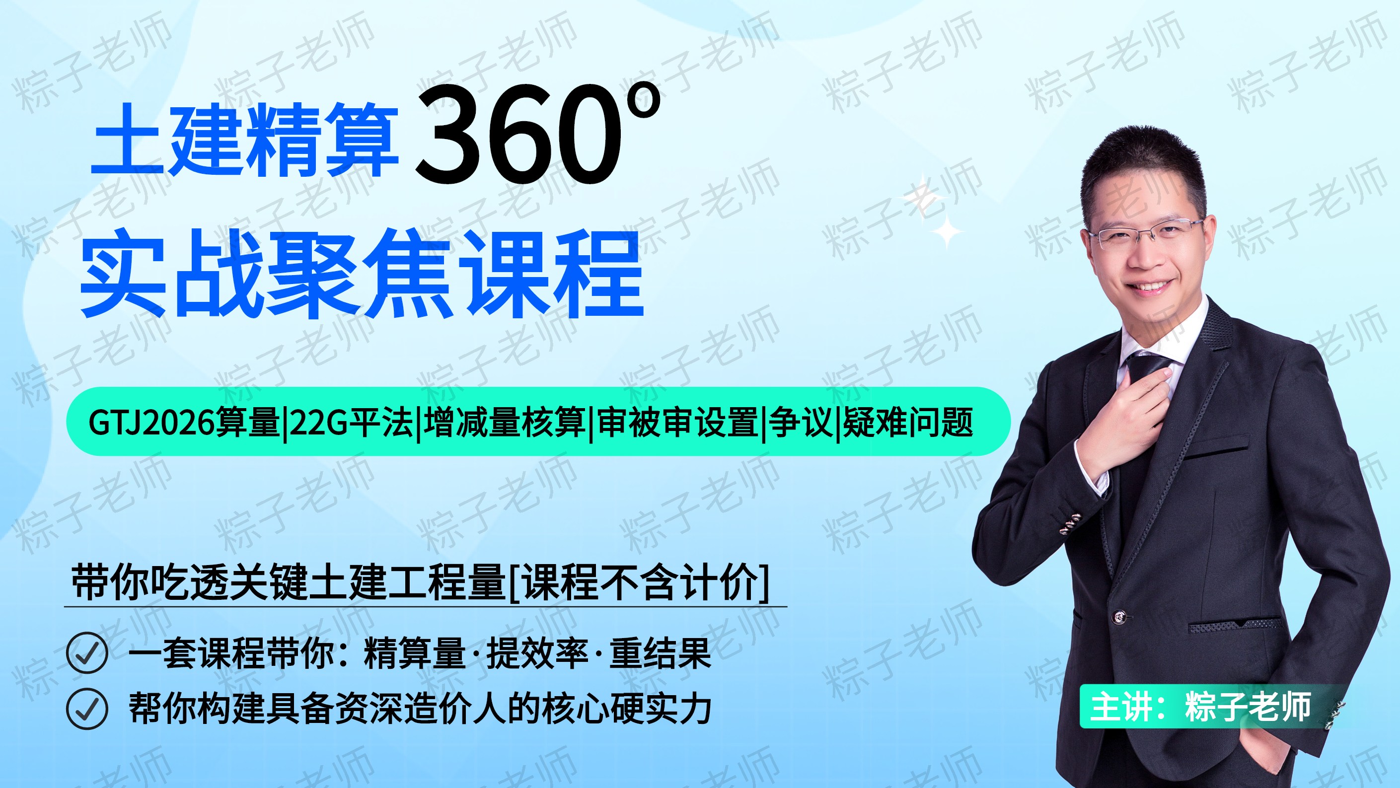 粽子老师课程:土建算量+土建计价; 赠送纸质版配套笔记《0基础+进阶土建造价笔记》